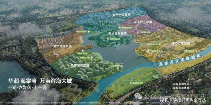 华润置地以 “治理 - 开发 - 生活” 核心理念,打造文商旅片区统筹开发模式,依托约 5500 亩海棠河生态公园,规划 “一湖・六聚落・十一园” 万亩滨海大城,助力海棠湾升级发展。
