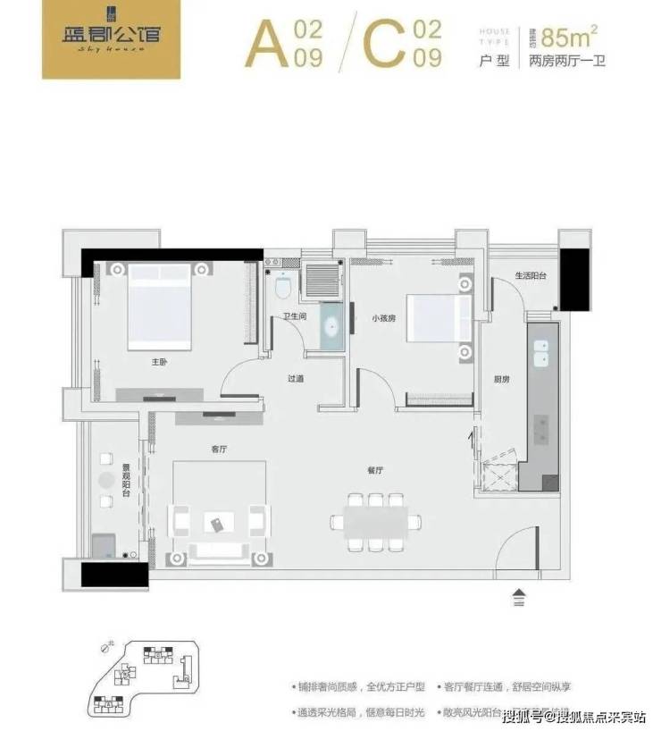 融汇公寓、办公、商业等多功能配套,以公寓作为核心产品,涵盖52-127㎡1-3房多重轻奢空间。