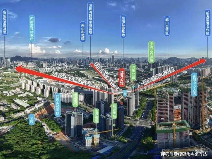 •西丽高铁站新城(在建中,直线距离约2.3km,预计2028年建成通车)、宝安国际机场、深圳湾口岸、前海口岸(规划中);