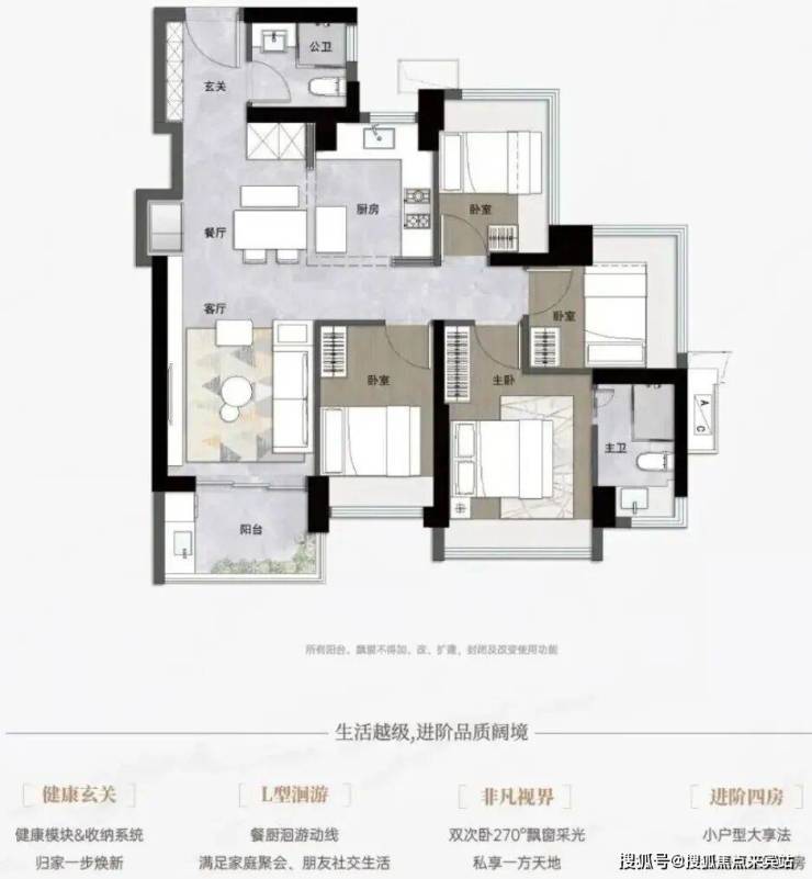超高得房率:套内得房率高达92%-93%,在小面积段实现了三房两卫的强悍功能-2-1。