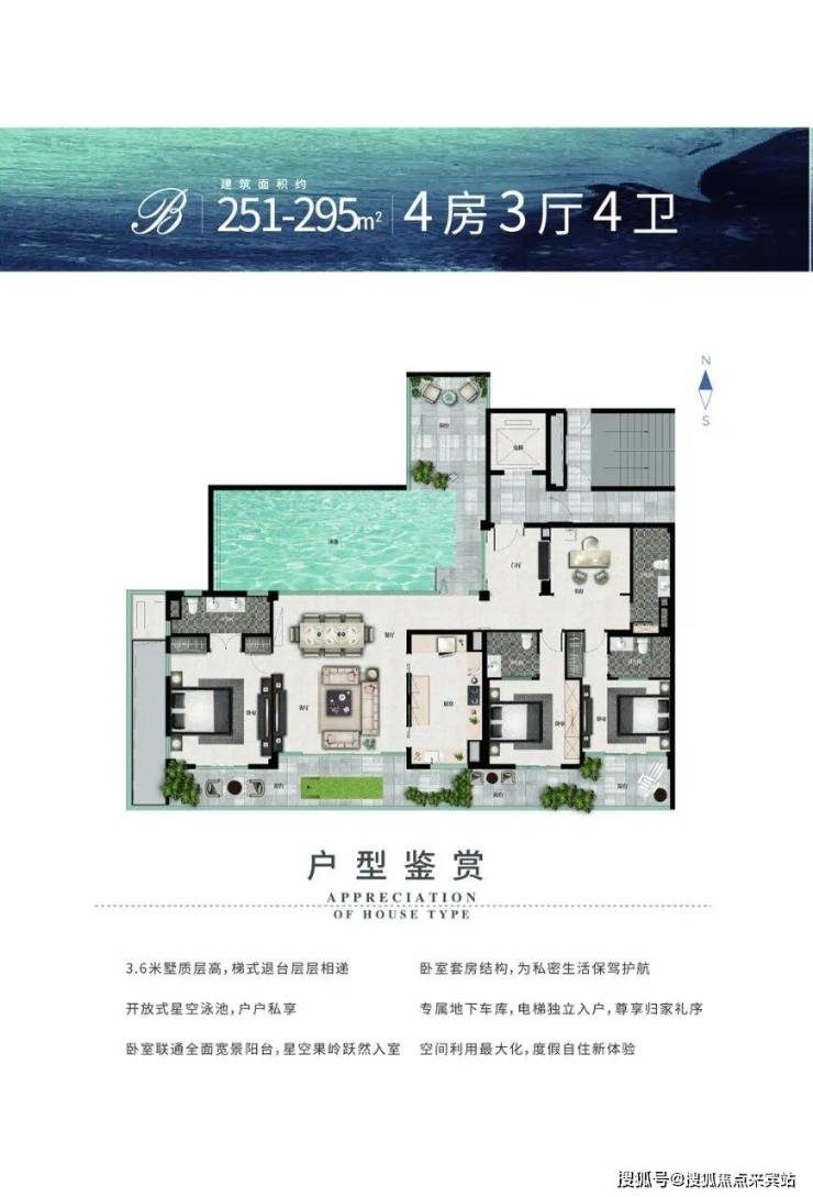 🏠B户型建筑面积:251-295㎡ 四房三厅四卫