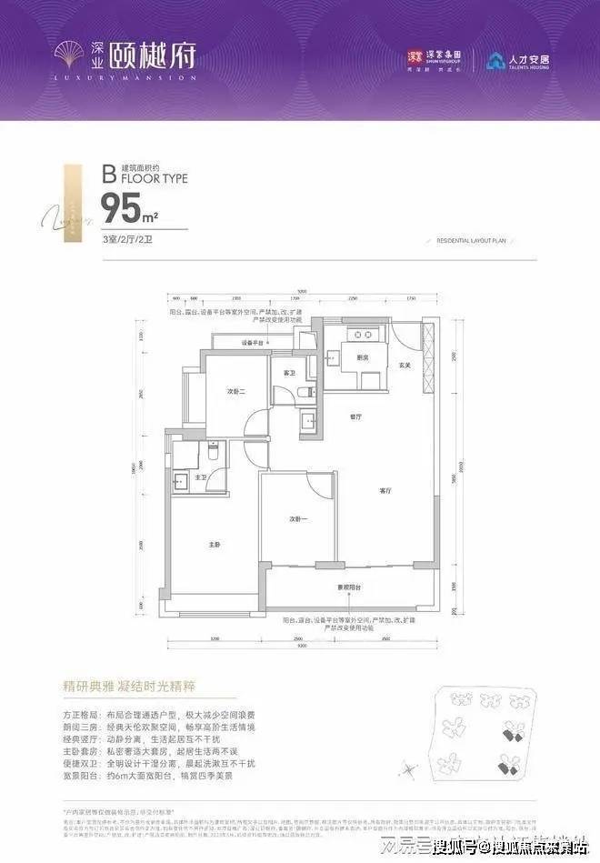 95㎡(2/3栋01/02/03户型)三房拥有稀缺的6米景观阳台,这不仅在红山,在整个龙华都非常少见。