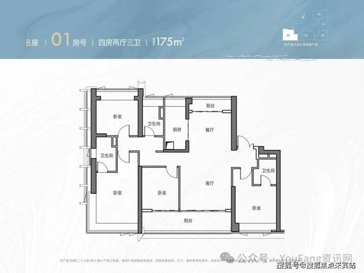 119-175㎡尺度阔绰户型,大开间纯板楼设计,实现南北通透,270度无遮挡视野,全城唯一。