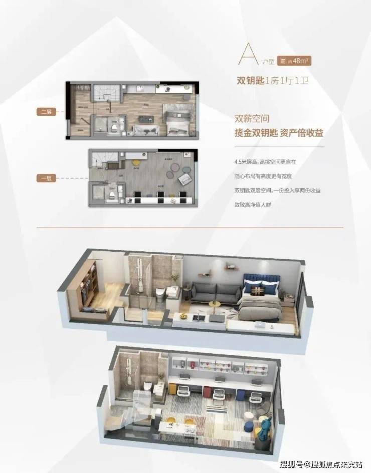 产品户型: 33m²、50m²、58m²复式