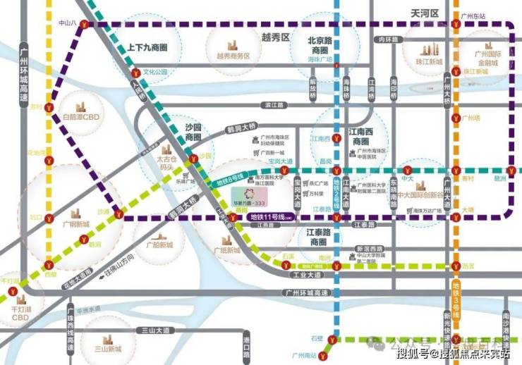 项目位于广州市海珠区工业大道- 工业大道中333号,地铁广佛线与广州地铁11号线交汇站燕岗站D出口上盖;规划海珠创新湾片区广纸新城的核心区域,是广州智能应用中心与广佛体验消费商圈,未来将打造粤港澳大湾区智能中心、珠三角西岸高端配套服务基地、广佛高品质休闲生活港湾和广州文化产业基地。