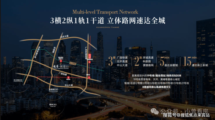 自驾出行:项目紧邻广园快速路、科韵路等城市主干道,自驾经广园快速可快速衔接珠江新城(约20分钟)、金融城(约15分钟)、琶洲(约25分钟)等核心区域;经科韵路可直达天河智慧城(约10分钟)、奥体中心(约15分钟),通勤效率显著。