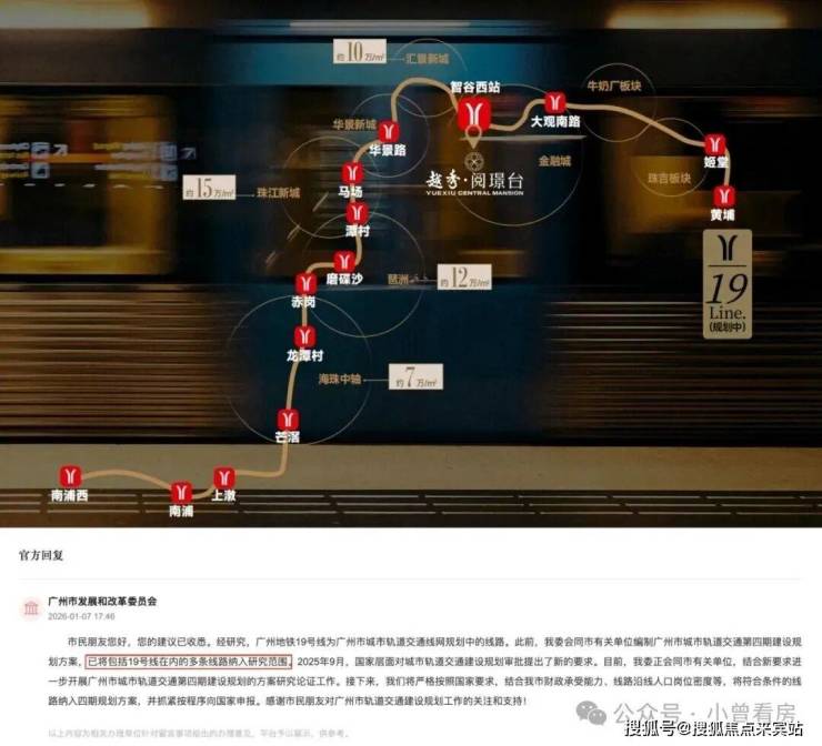 该线路广氮西站预计落在天河智谷广棠片区,未来通车后,项目业主可直达珠江新城(约4站)、琶洲(约6站),大幅提升轨道交通便利性。