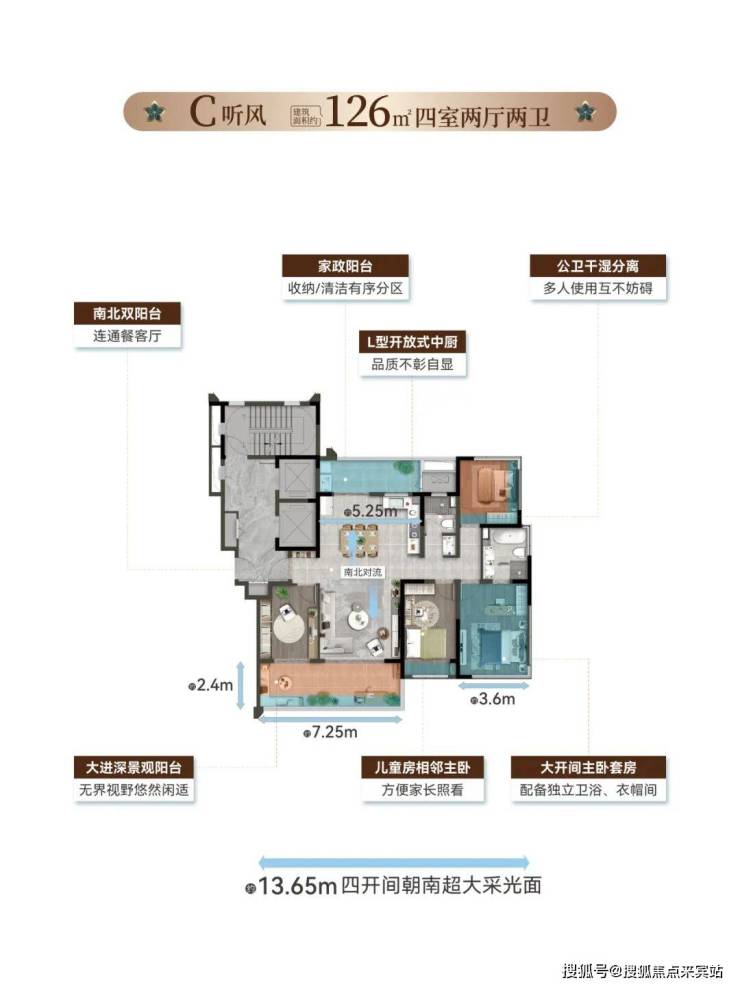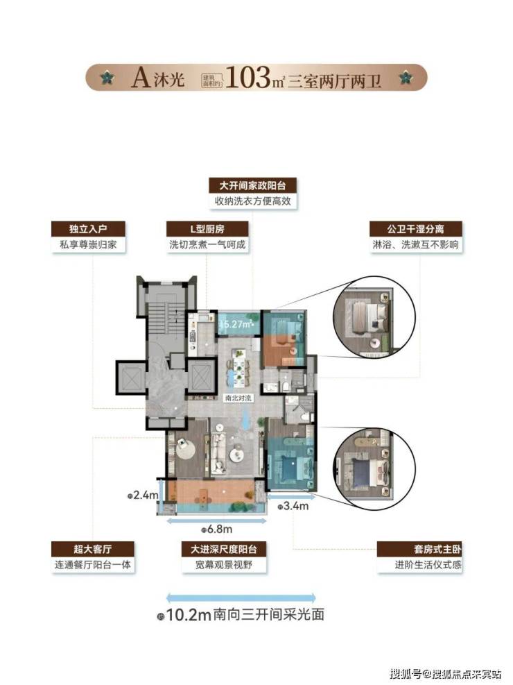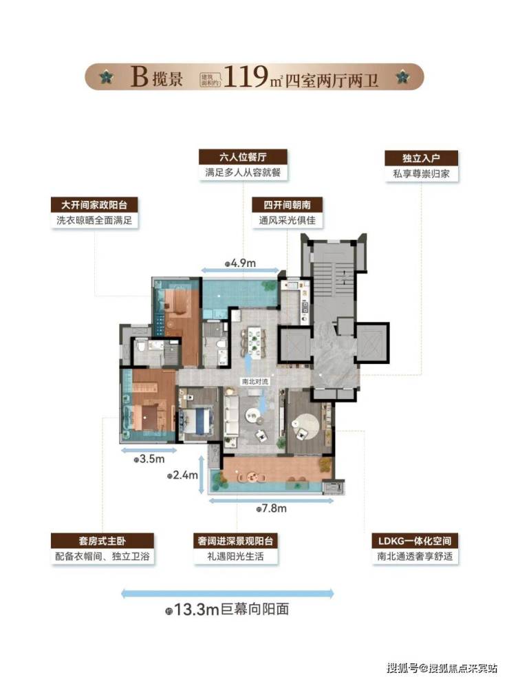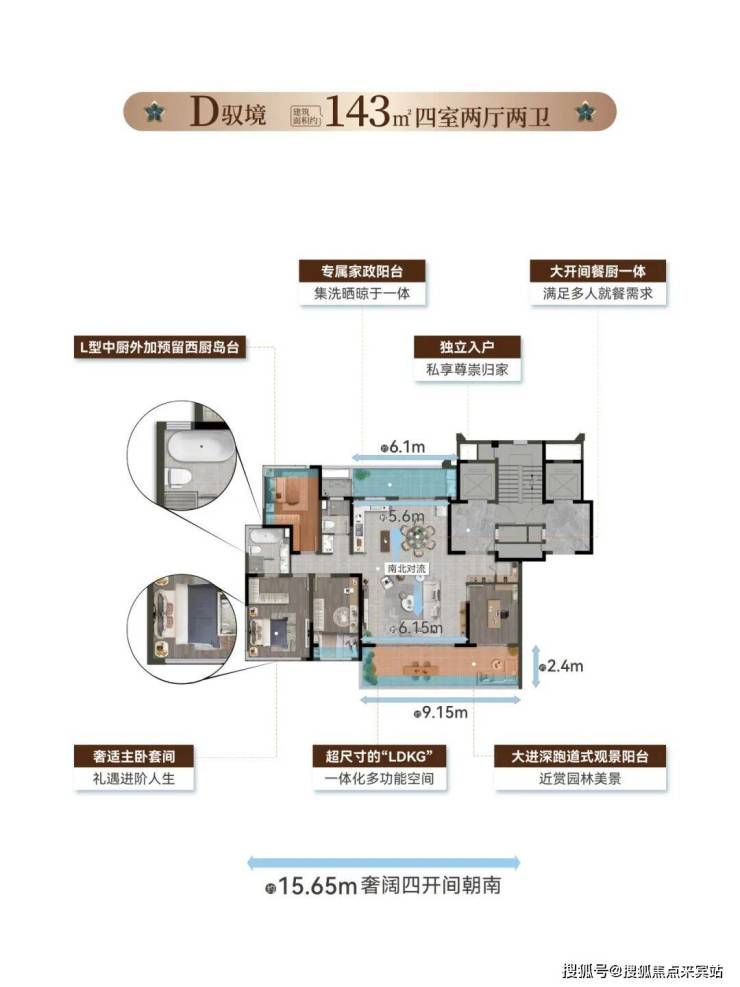 以一轴・一街・一环・六大场景设计规划,结合南北双阳台纯板楼、一梯一户及超113%得房率设计,让度假的松弛感与生活的仪式感在此交融。