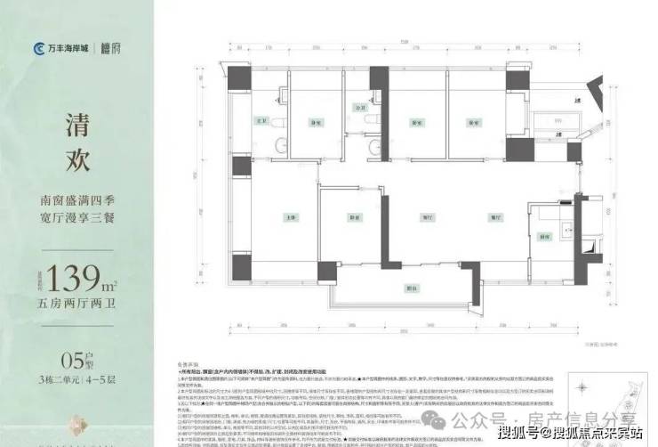 建面约139㎡5房2卫:折后总价约750万/套,首付112.5万左右(1.5成),片区稀缺大5房(得房率100%)。