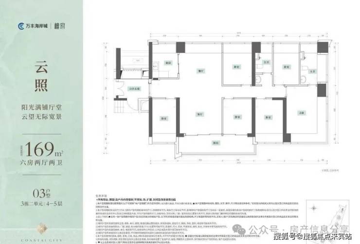 建面约169㎡6房2卫:折后总价约946.4万/套,首付142万左右(1.5成),终极改善稀缺藏品(得房率100%)。