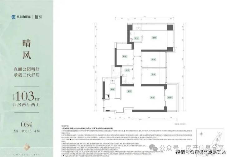 建面约103㎡4房2卫:折后总价约525.3万/套,首付78.8万/套左右(1.5成),即可上车舒居4房(得房率99%)。