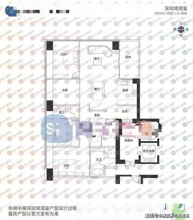 ①低中区5F起(150米以内)是约209-304㎡四房以上大户型;