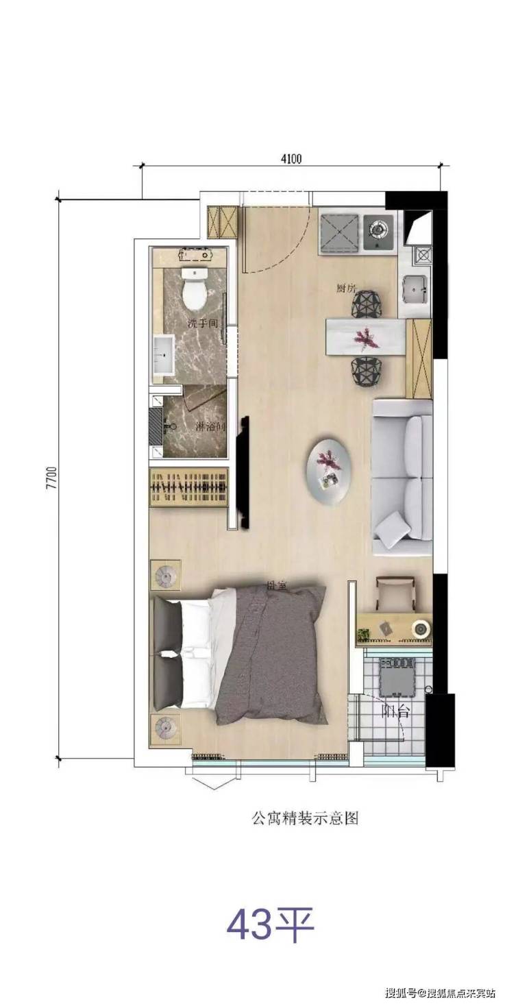 43㎡公寓(主力 1 室 1 厅 1 卫)