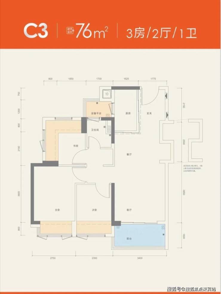 建面约76㎡3房1卫
