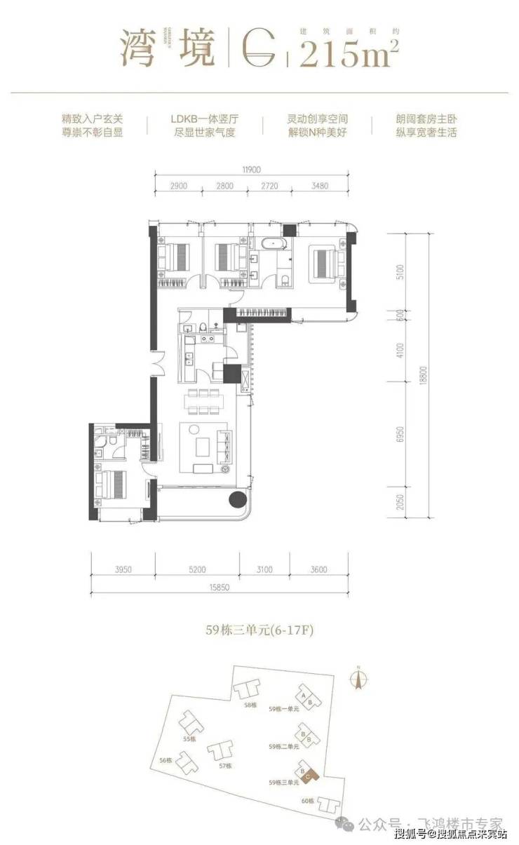 对于改善型家庭,建面约190平方米的四房三卫提供了更宽敞的生活空间。而建面约215-295平方米的大平层,则是高端改善人群的终极选择。