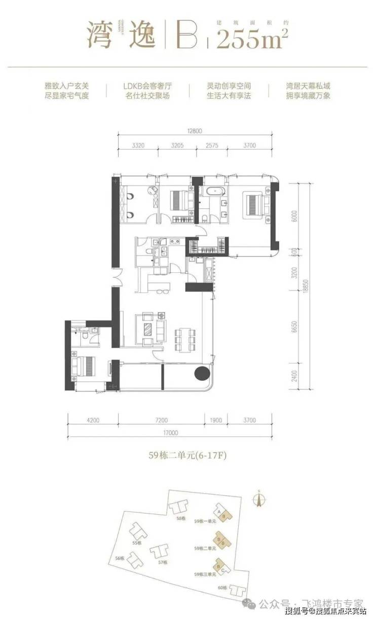 这些大平层户型中,以建面约255平方米的B户型为例,它拥有270度环幕视野,四房格局配中西双厨,充分考虑了家庭成员的多样化需求。