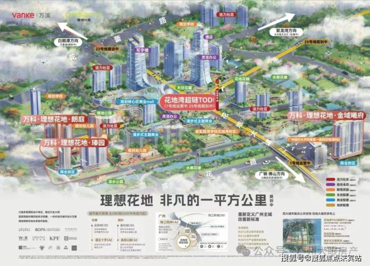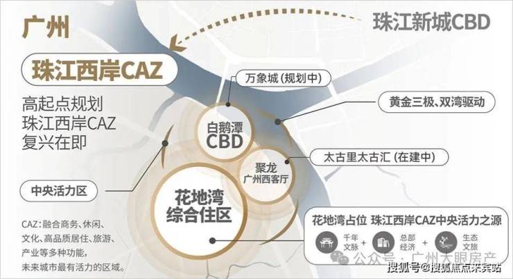此外花地湾片区基本都是由万科统一开发,汇合白鹅潭-花地湾-聚龙组团的板块张力,白鹅潭核心区、聚龙组团、花地湾组团,于半径约2KM内构建珠江西岸CAZ黄金三极。