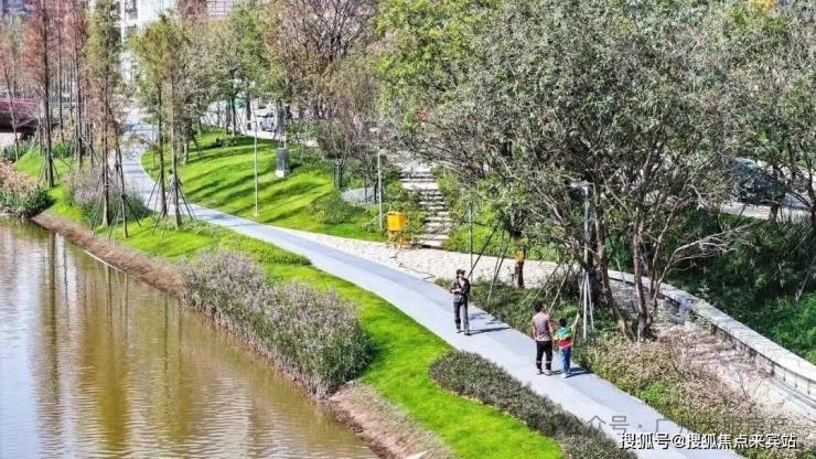 小区出门15米就是约4.5万平的滨水公园,是万科融合1700多年花地文化故事,打造瑧园业主归家必经的第一道动线。