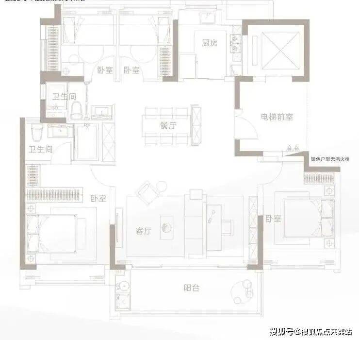 面积:79-85㎡3房1卫,91-95㎡3房 2卫,125㎡4房2卫