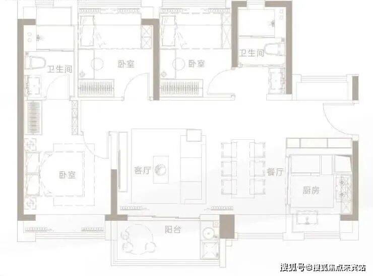 全屋通透三房,三面采光,明厨明卫,L型厨房,多元功能合理配置,三卧室均带飘窗,空间利用率高