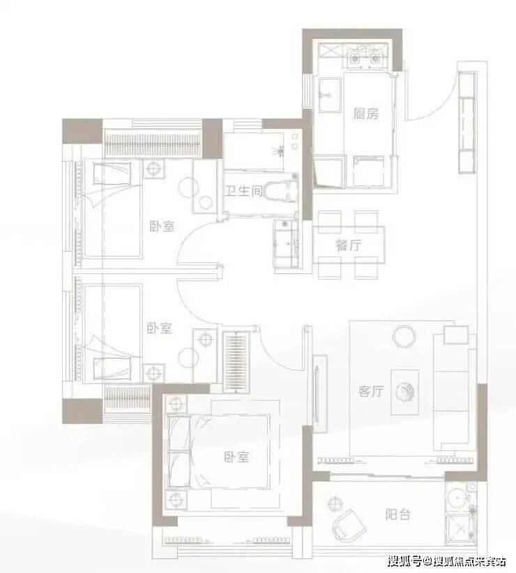 建面约79㎡3房2厅1卫: