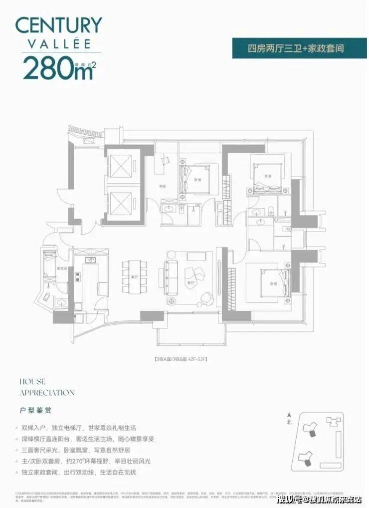 前两次都是公寓,现在住宅首发!还是定位相当高端的纯大平层而且还是无敌景观视野,8梯3户,233㎡/280㎡配备两个独立电梯,386㎡双梯设计,实在任性!