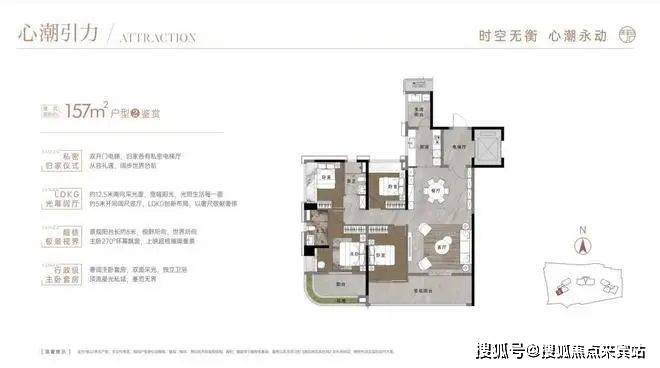 - 稀缺席位:全盘仅166户,主力户型157-257㎡大平层,私梯入户、户户朝南,层高3.3米,定位纯粹高端圈层。