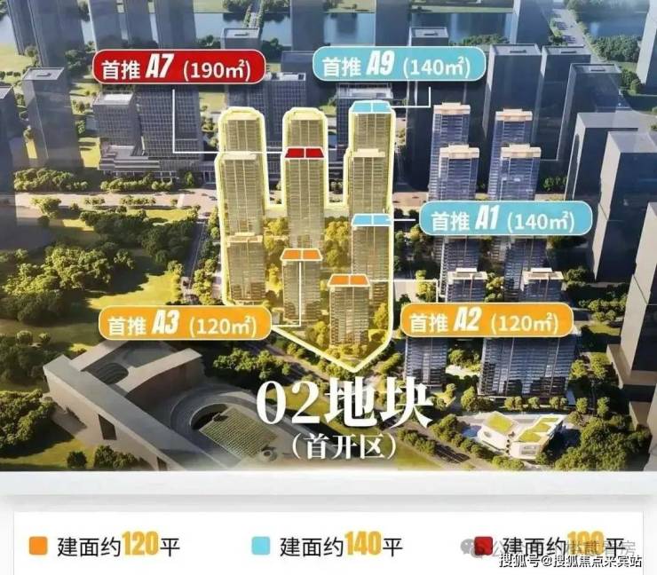 02地块规划了3个面积段,120-140-190平,都是南北对流双阳台四房。