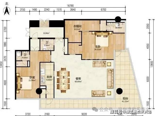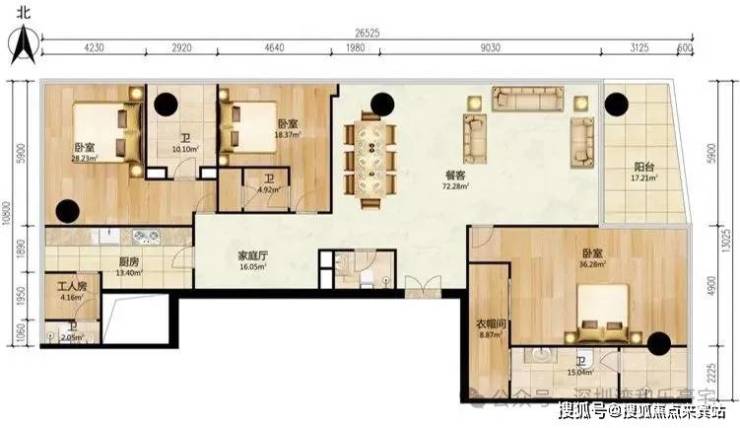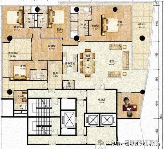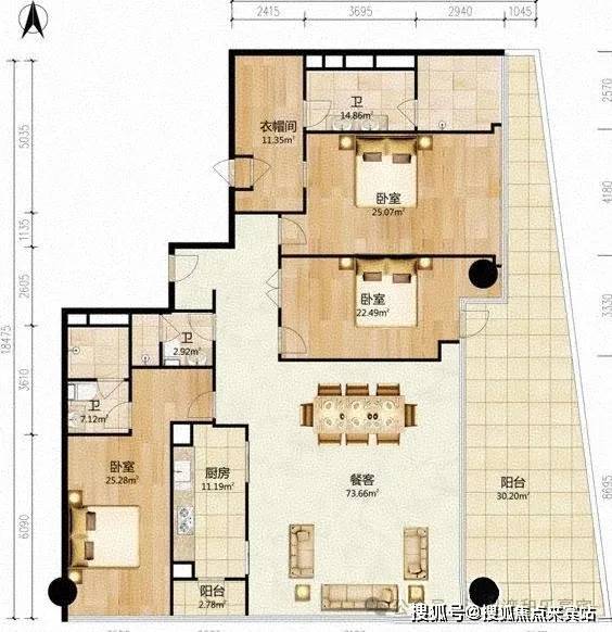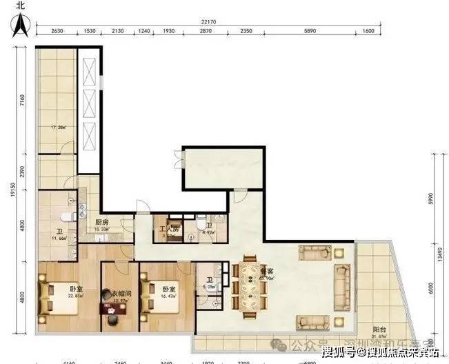 优点:超大L形超长阳台,270度观景,主仆分区,主次卧分区,私密性强。