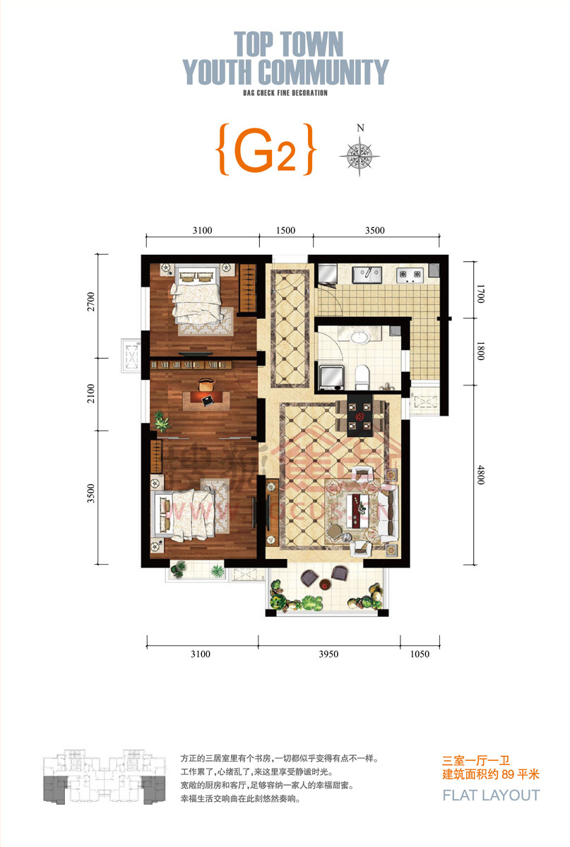 3室1厅1卫-青年社区二期G2(不包含10、12号楼)