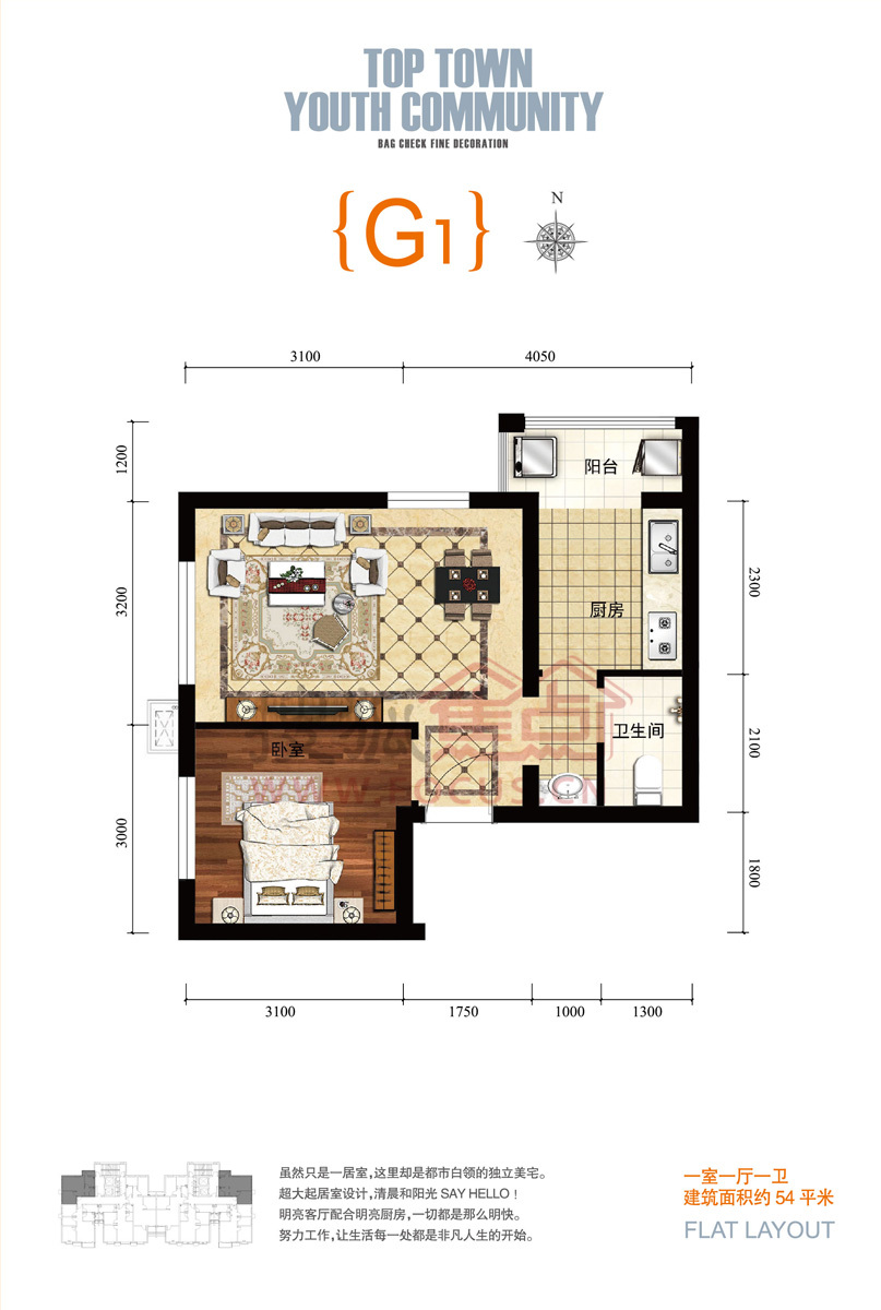1室1厅1卫-青年社区二期G1(不包含10、12号楼)
