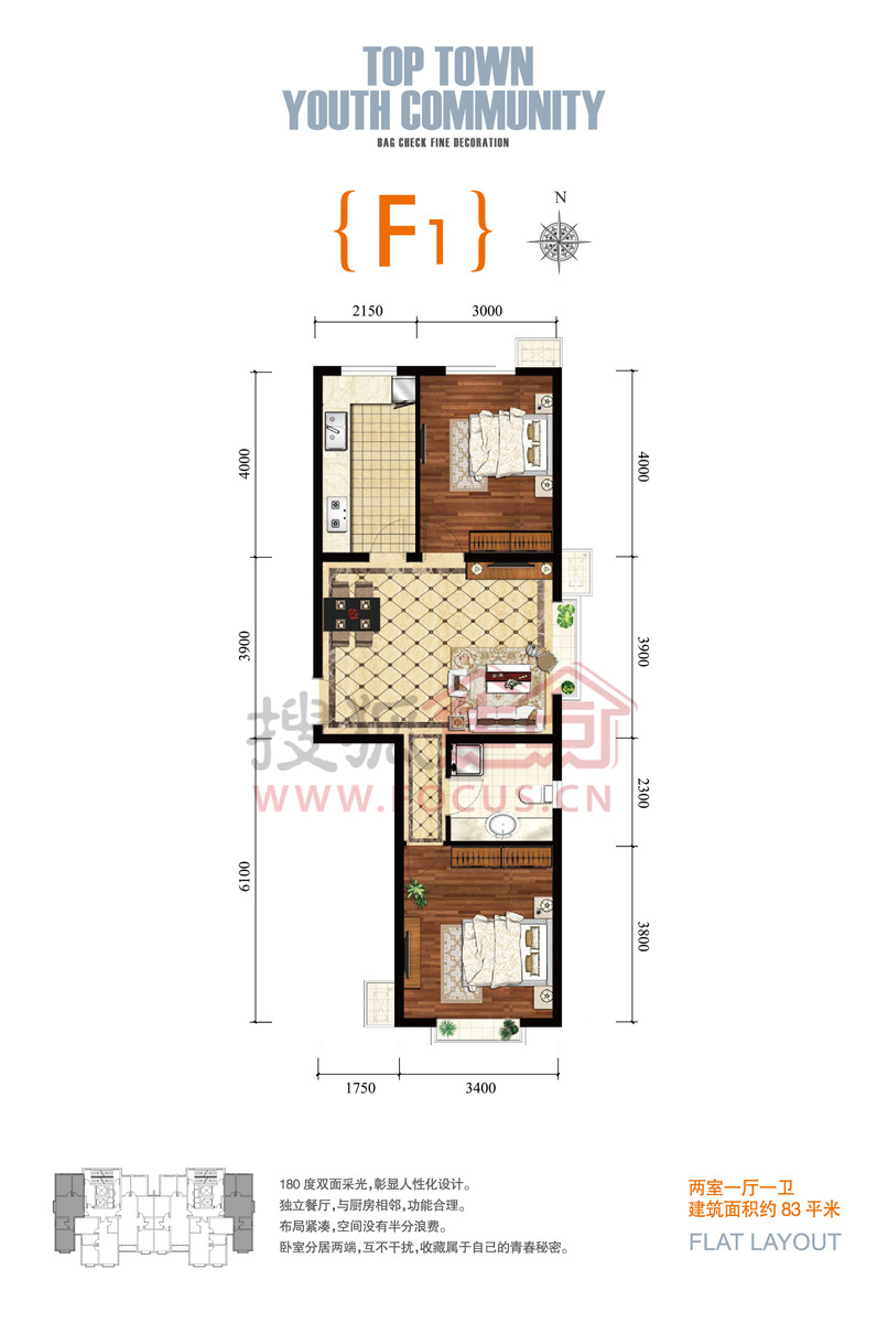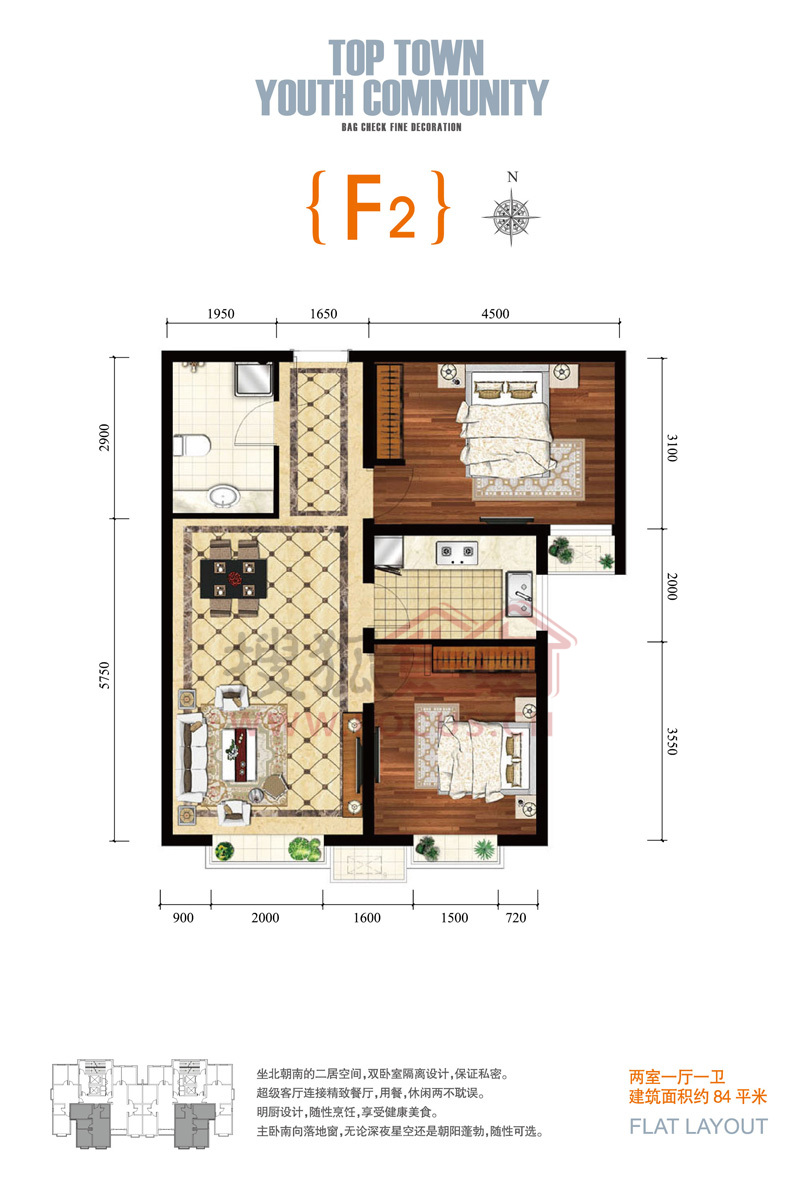 2室1厅1卫-青年社区二期B3(不包含10、12号楼)
