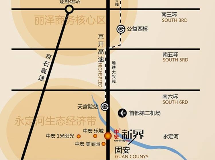 固安106国道与新源街路口西行400米中宏新界售楼处