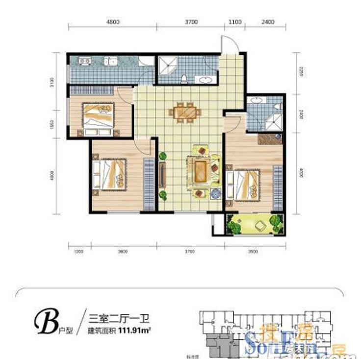 3室2厅1卫-B户型