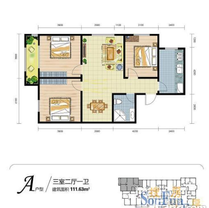 3室2厅1卫-A户型