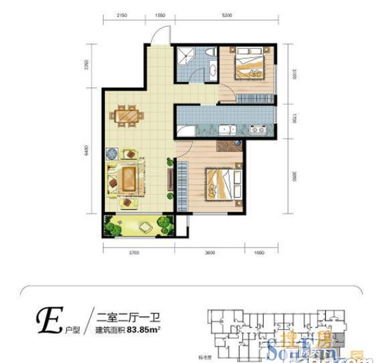2室2厅1卫-E户型