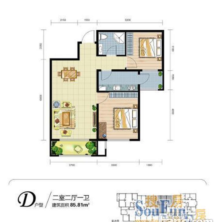 2室2厅1卫-D户型