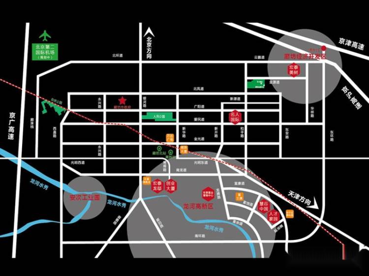 其他:创业大厦北侧是安次区行政服务中心,南侧是红星国际广场,东侧是证大大拇指广场,西侧是宏泰龙邸,红星美凯龙、K2狮子城等,还有即将开建的爱琴海商业项目。一条南龙道一个城市CBD的崛起。随着政务、商业、写字楼、居住、金融、餐饮、酒店、服务业一应俱全,创业大厦未来必将升值无限。