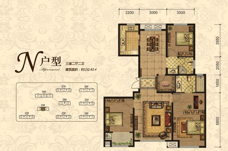 3室2厅2卫-29#楼 N户型 132㎡三居