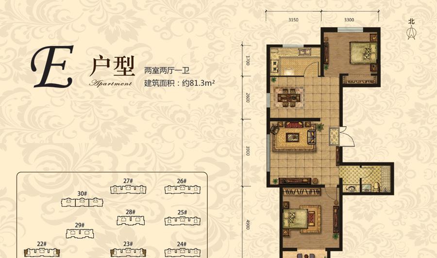 2室2厅1卫-22#23#楼 E户型 81.3㎡两居
