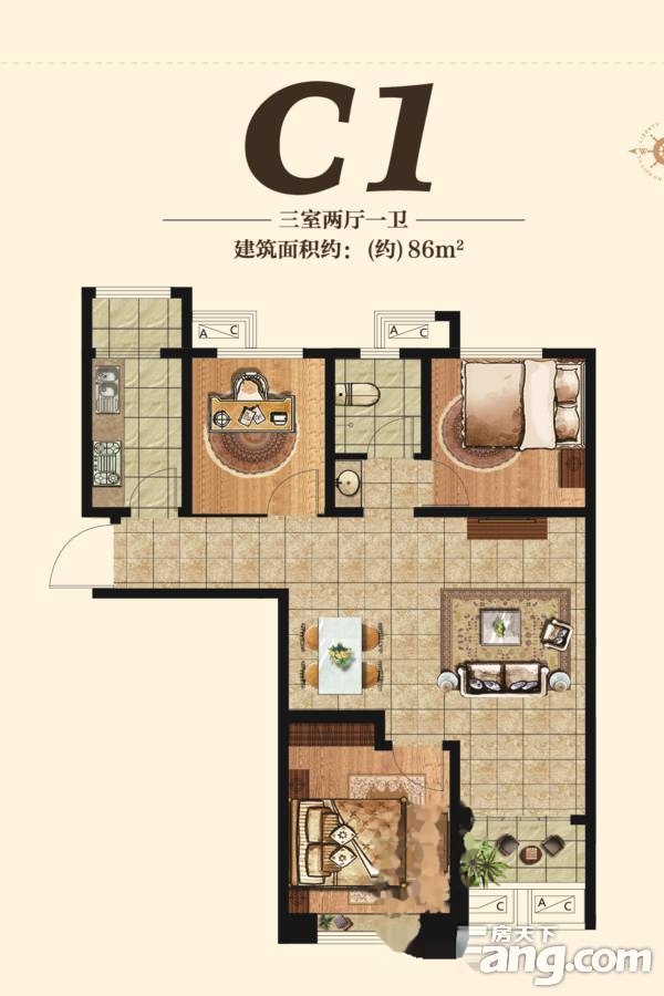 3室2厅1卫-7#13#楼86㎡ C1户型