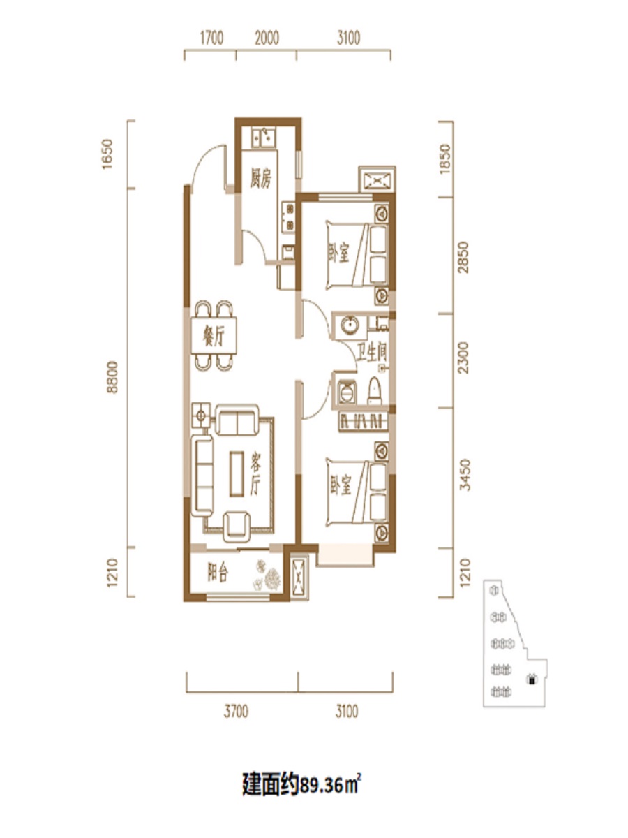 2室2厅1卫-89.36平