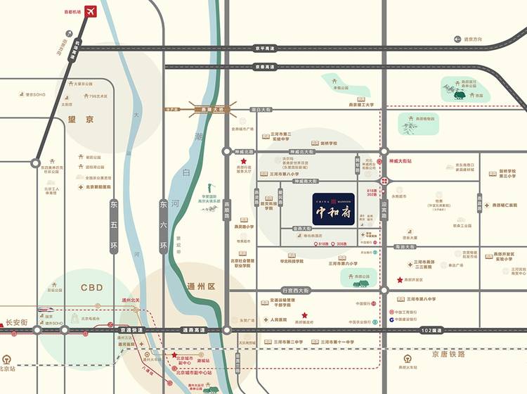 驾车可由京平高速、京秦高速、徐尹路、通燕高速,方便快捷到达北京市区、首都国际机场、通州副中心等区域