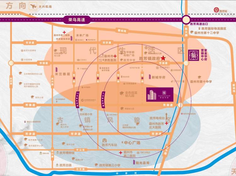 霸州市胜芳镇廊大路与芳清道交汇处东北角紫金华府营销中心