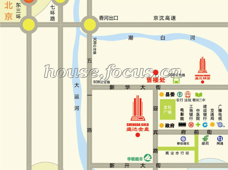 项目的西侧迎宾路和南侧淑阳大街有香河步行街,华联广场,新天地广场等购物中心。