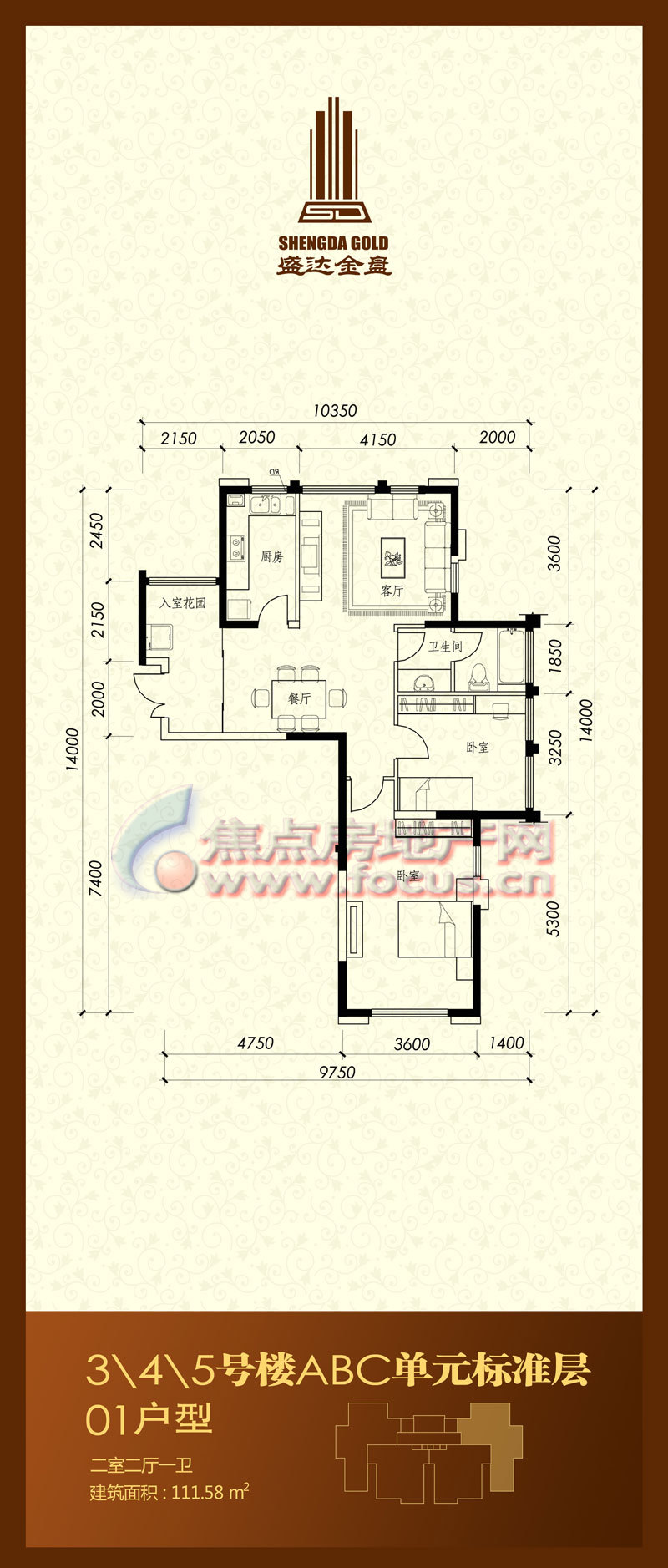 2室2厅1卫-盛达金盘3#、4#、5#楼ABC单元标准层01两室两厅一卫111.58平方米