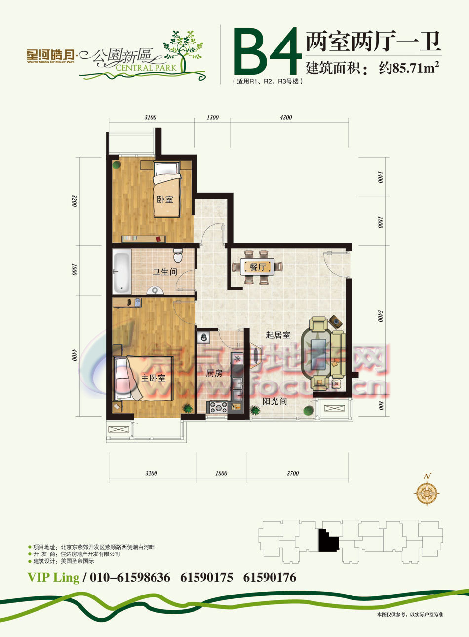 2室2厅1卫-公园新区R1-R3号楼B4两室两厅一卫85.71平方米