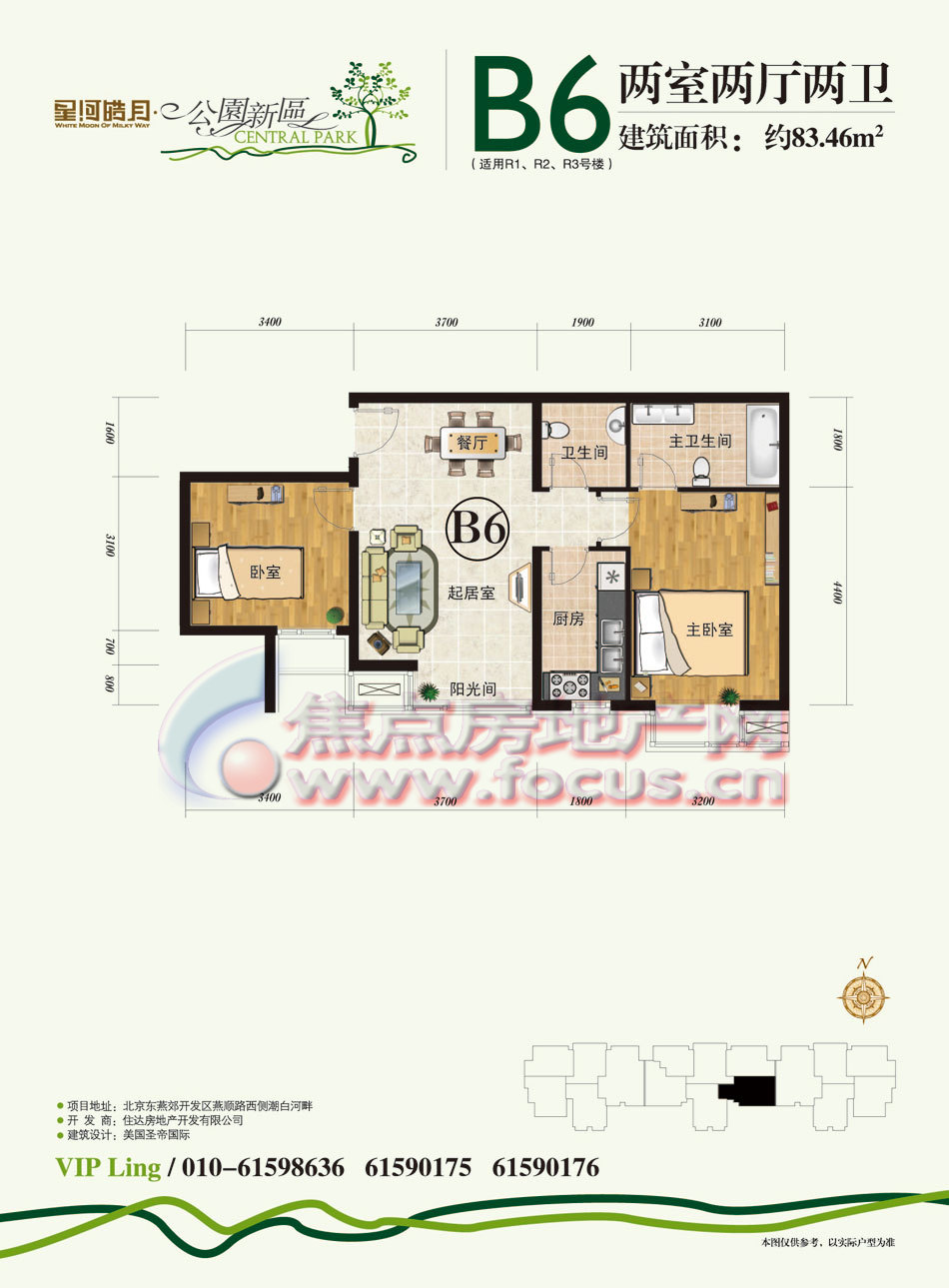 2室2厅2卫-公园新区R1-R3号楼B6两室两厅两卫83.46平方米