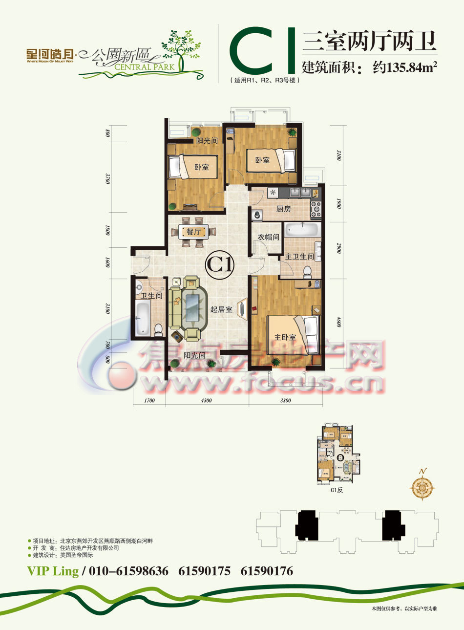 3室2厅2卫-公园新区R1-R3号楼C1三室两厅两卫135.84平方米