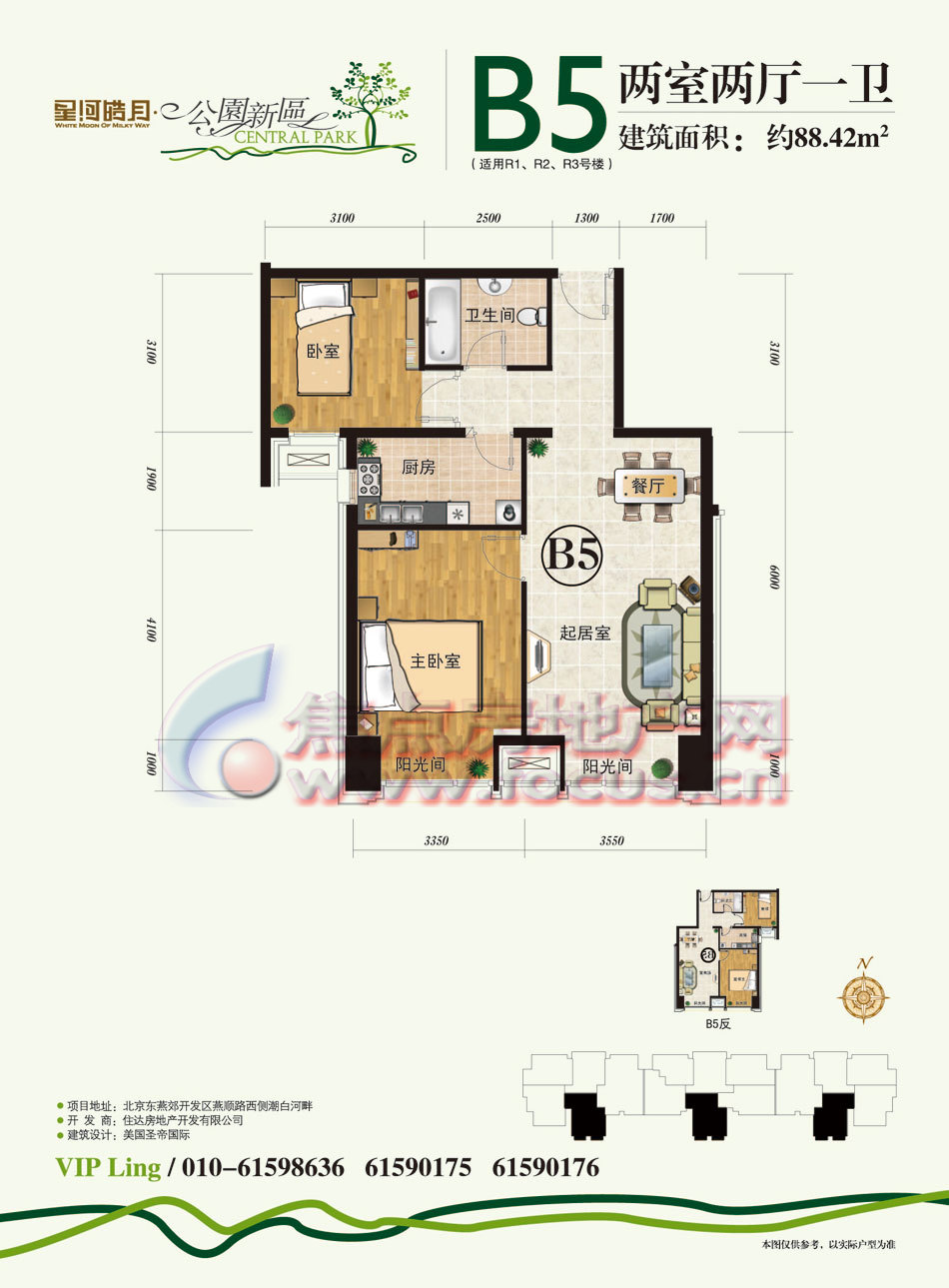 2室2厅1卫-公园新区R1-R3号楼B5两室两厅一卫88.42平方米